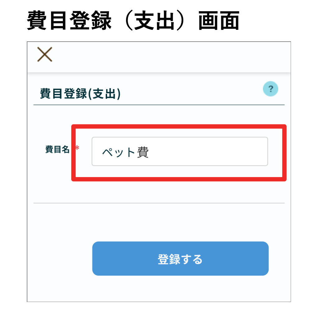 新たな費目名を入力し、「登録する」を押します。ここでは仮に「ペット費」と入力します。